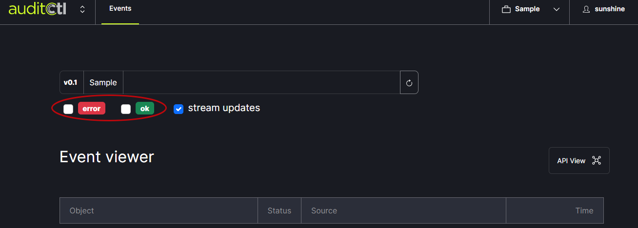 The error and ok check boxes can be used to filter the list of results shown.