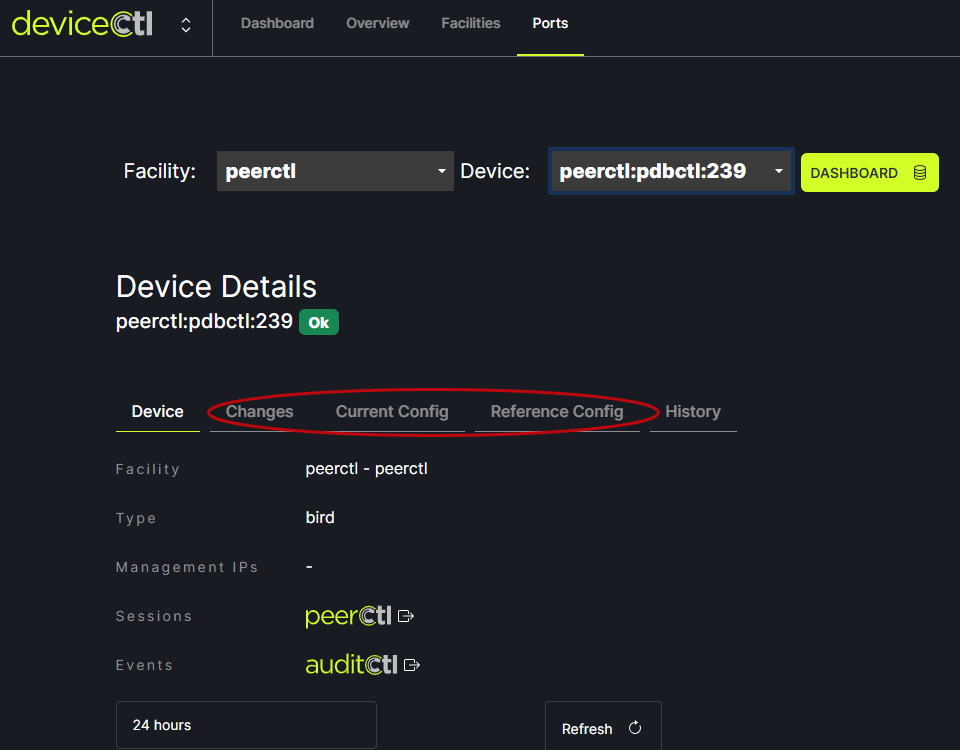 AuditCtl pushes information to DeviceCtl. Specifically, on the Ports tab in the Changes, Current Config and Reference Config sections.