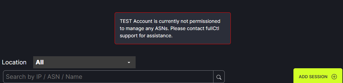 To fully use PeerCtl, your account must be granted permission to manage ASNs. A message will appear until permission is granted.