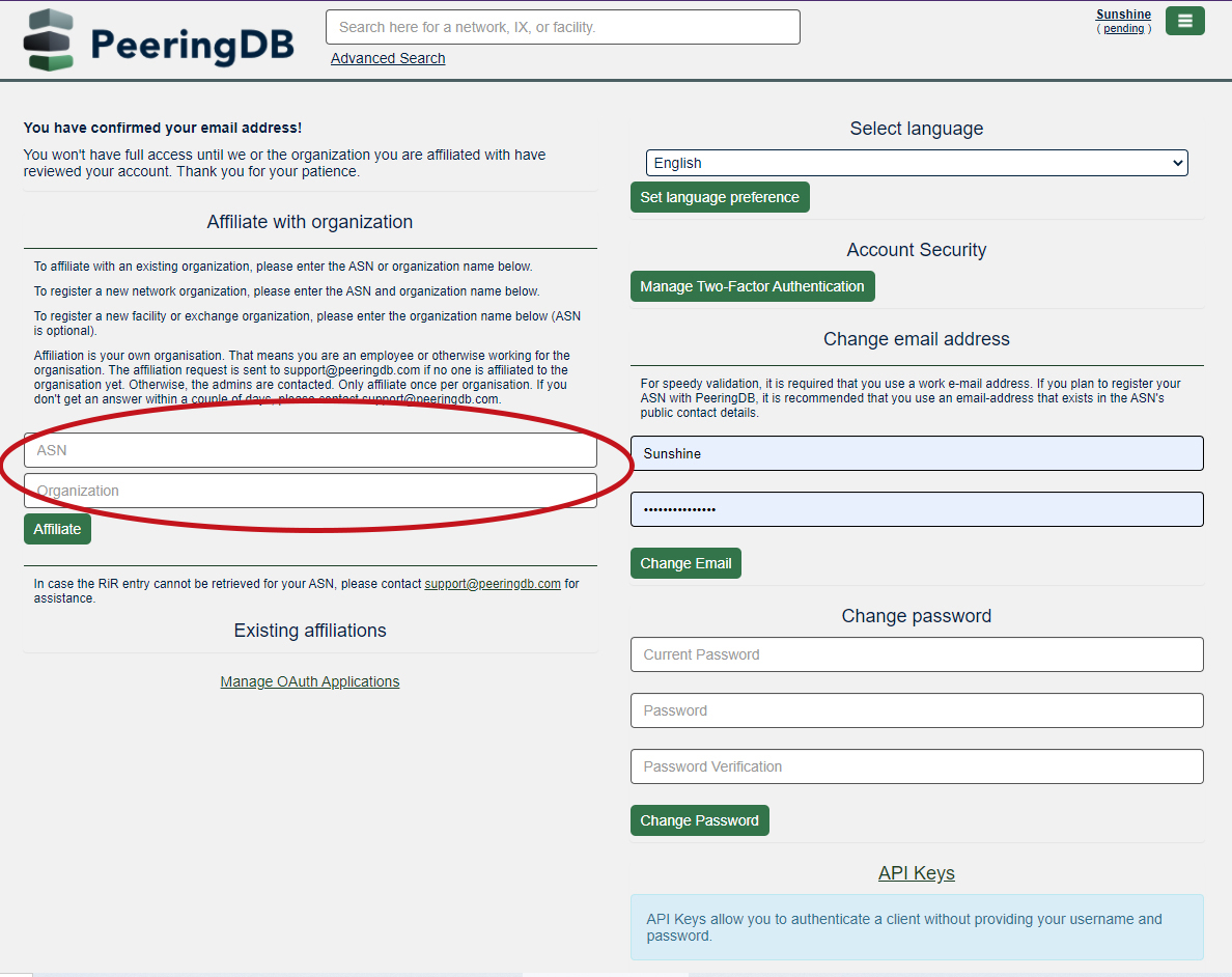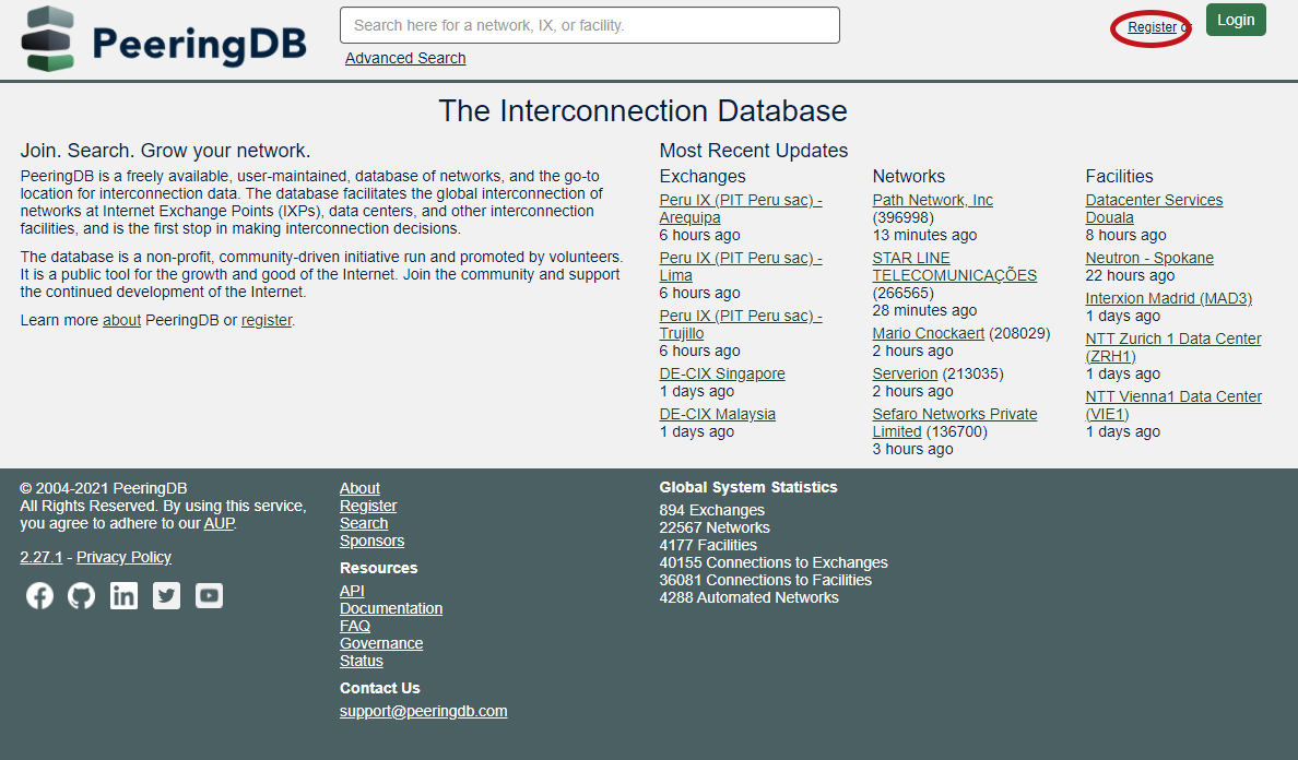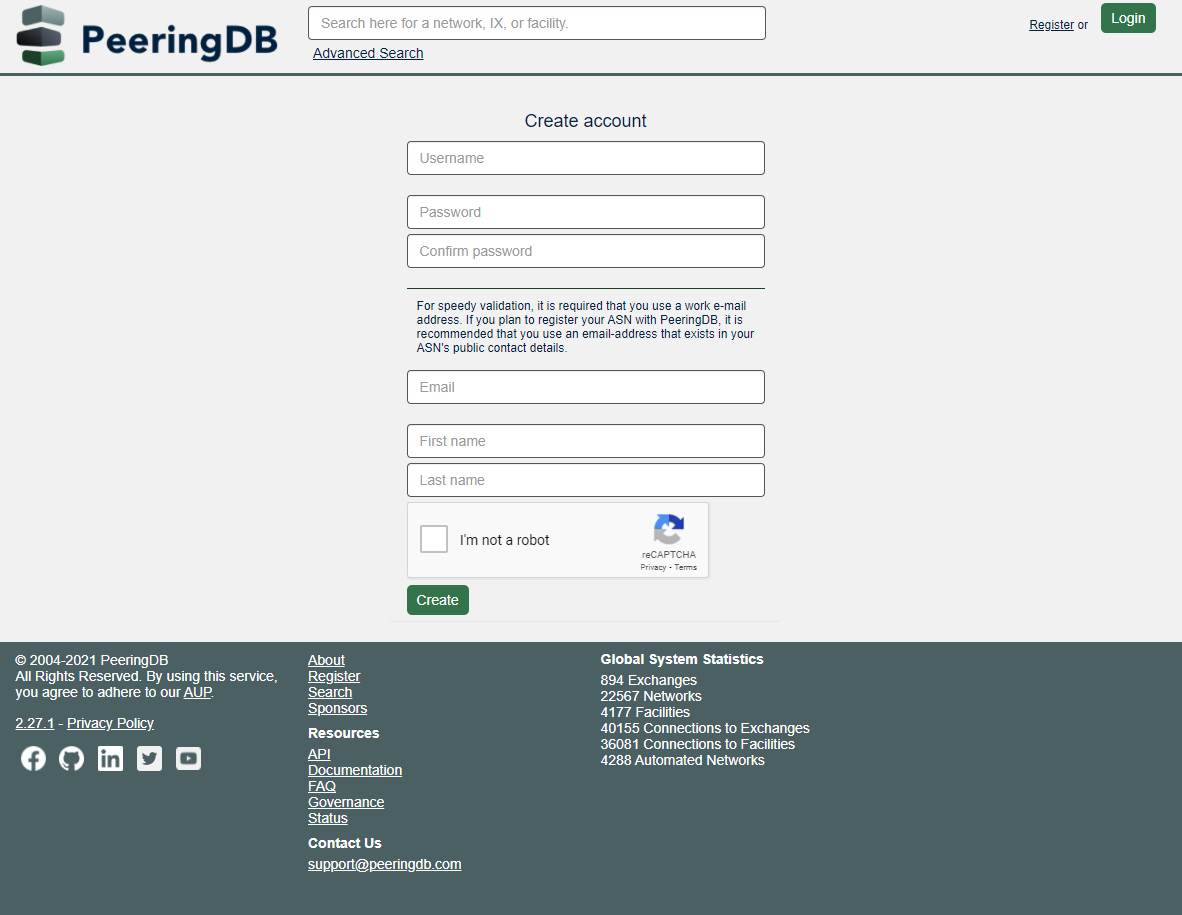 Sign up for PeeringDB